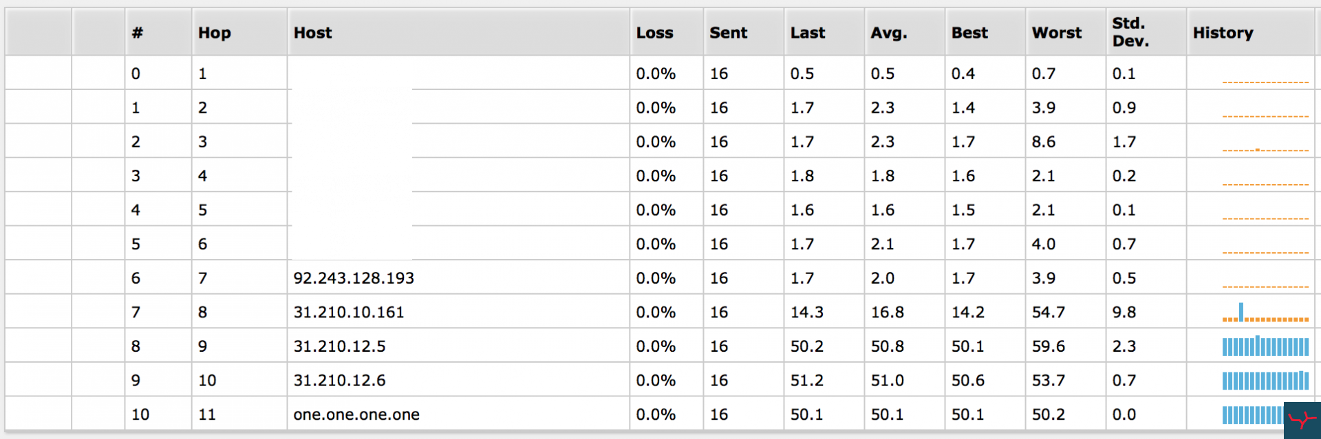 Traceroutes direkt am Mikrotik-Router durchgeführt.